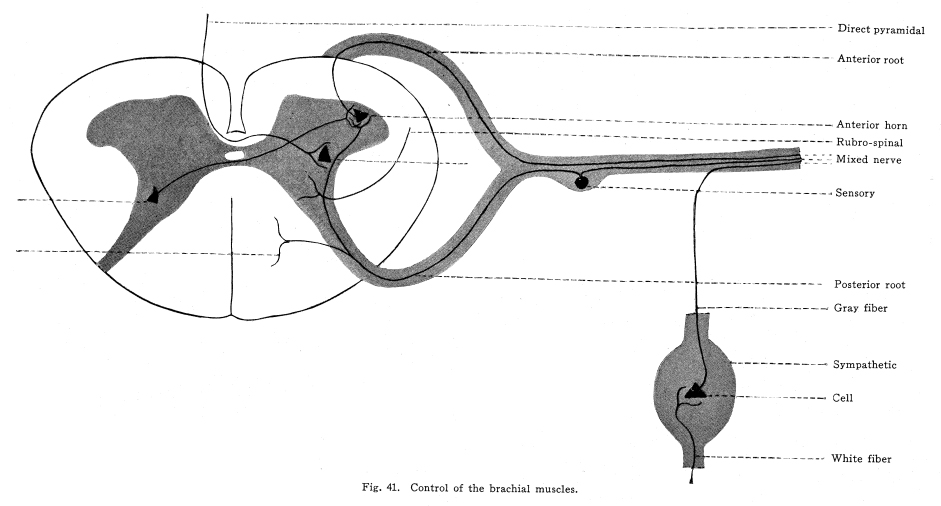 Direct pyramidal; Anterior root; Anterior horn; Rubro-spinal; Mixed nerve;
