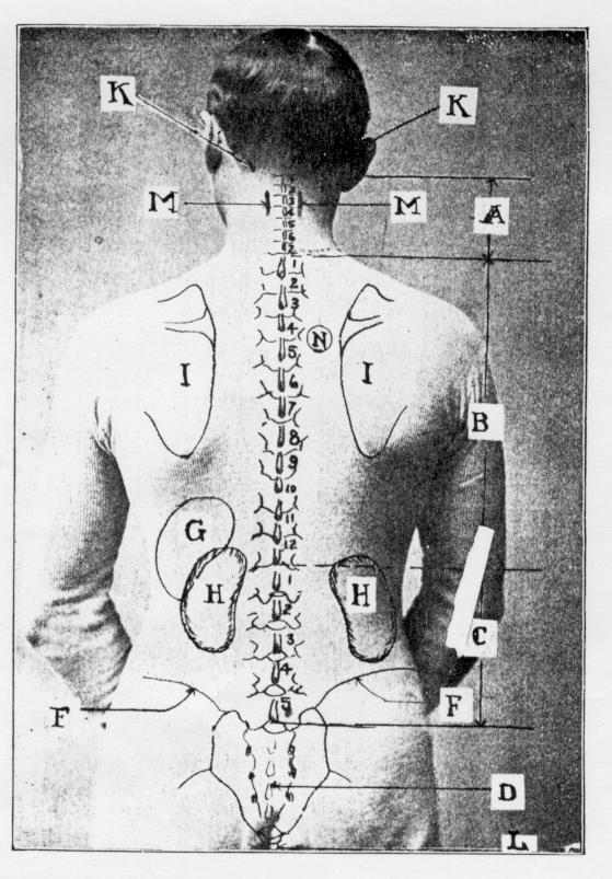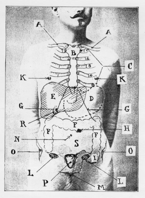 about two inches to the left of the spinal column, as shown in cut, draw