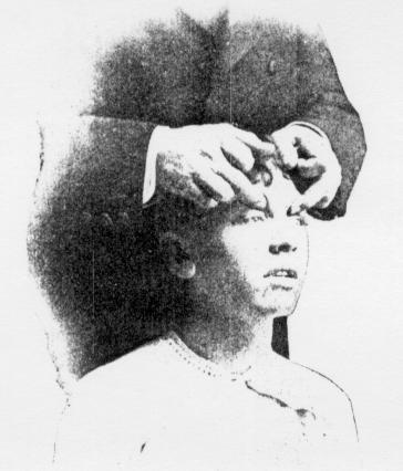 on his forehead, and with the other manipulate the muscles of the side