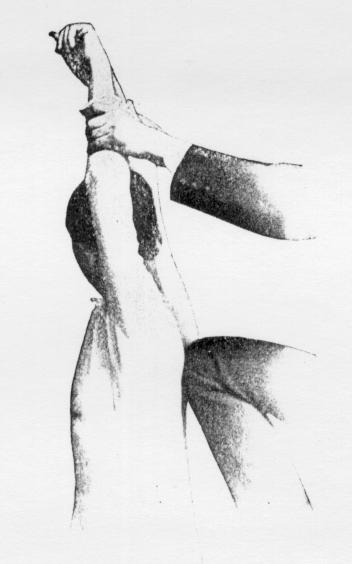 the arm downward with a backward motion. Now lower the thumb of the