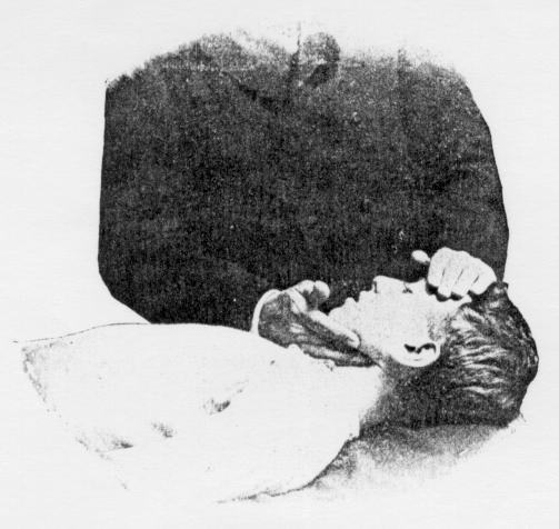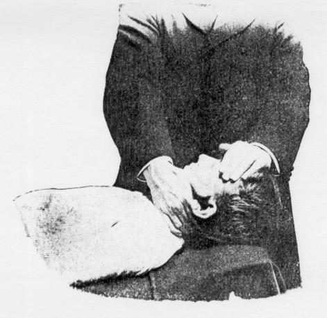 the head backward with the left hand and hold same for two or three