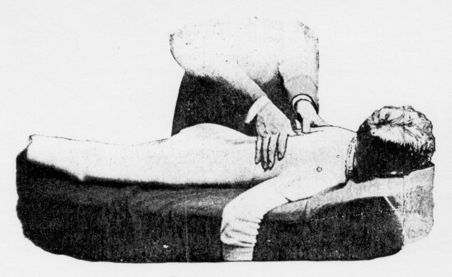 WITH the patient on his back, place your hands upon