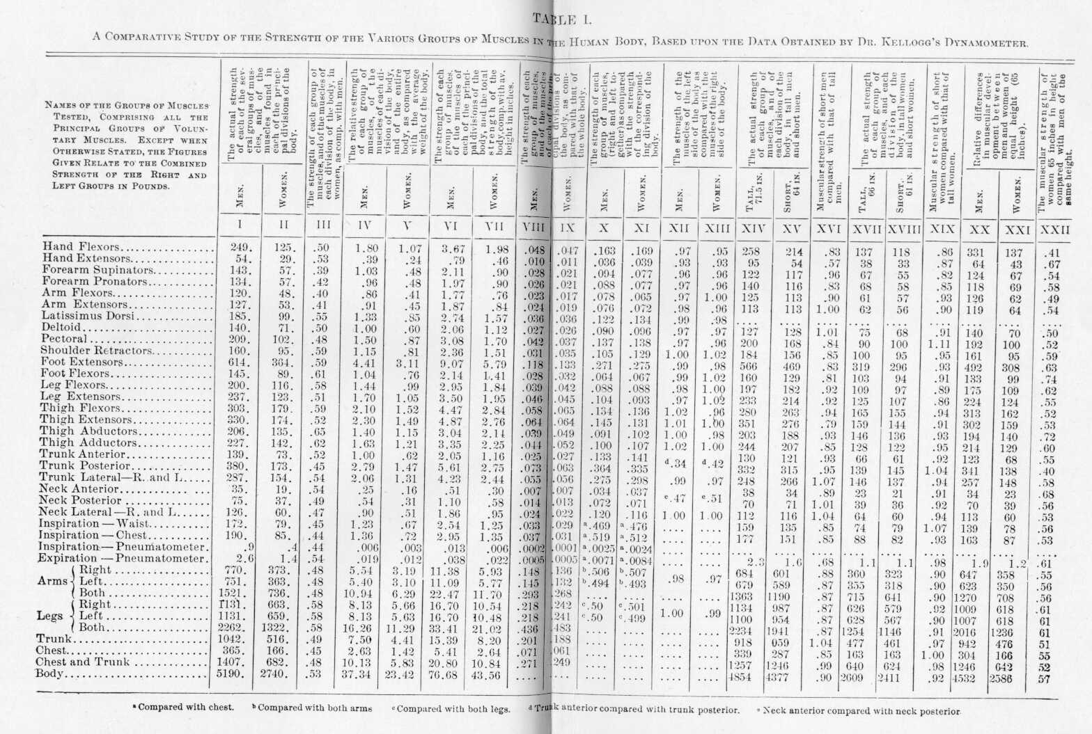 RELATIVE STRENGTH OF HOMOLOGOUS GROUPS OF MUSCLES IN MEN AND