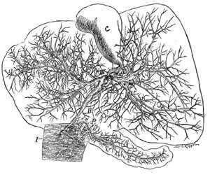 This cut represents an X-ray of the ducts of the liver and pancreas.