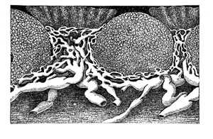 vessels and oedema are conspicuous features.