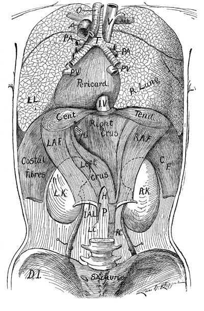 and fixing the thoracic and abdominal organs in their normal physiologic position,