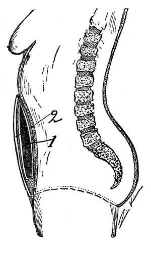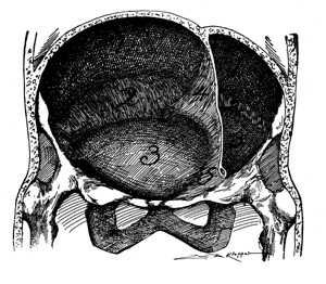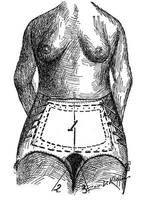 A lateral view of a female splanchnoptotic, a multipara, showing relaxed