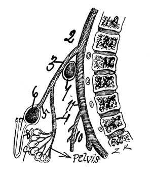 artery, vein and nerve). Splanchnoptosia signifies abnormal distalward