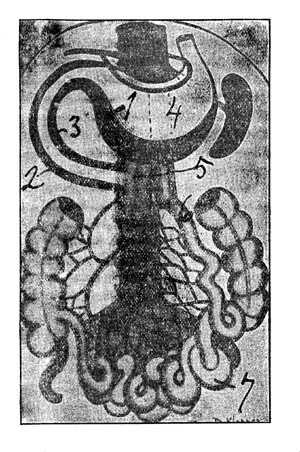 (5) Tractus intestinalis, (6) Tractus urinarius, (7) Tractus Genitalis (in the