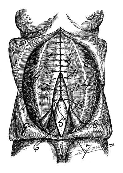 A female splanchnoptotic, a multipara, ventral view of relaxed abdominal