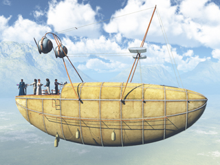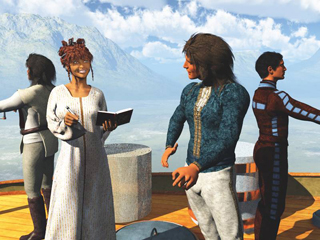 In creating the imagery for the story of Esdrom-m, I have placed her on an Atlantean aircraft - a balloon type vessel adapted for warfare against the marauding animals. She had been assigned to keep records but became infatuated with one of the handsome young Belials commanders, causing her to loose track of the purpose of her mission.