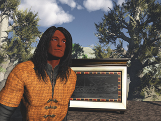 In portraying the character and activity of Oron, I have placed him in a scene in the Yucatan. Iltar, the leader of the expedition, is overseeing the completion of a temple in which the records will be placed. In the background (as always) Oron is safeguarding the records that are being moved into the newly completed temple.