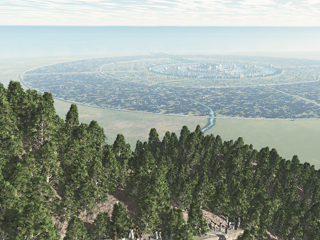 The idea of circular cities in Atlantis goes back to Plato who described the capital city of Atlantis in just that way. His Dialogues detail the design of the city in terms of concentric circles alternating between land and water with walls as needed to maintain the circular layout.